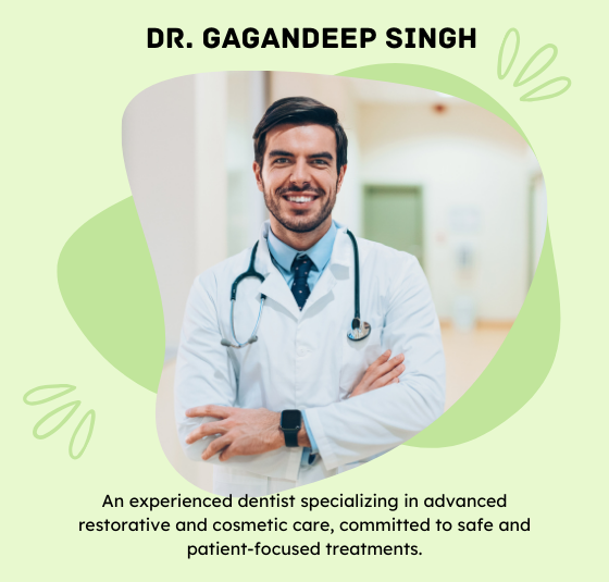Dr. Gagandeep is a caring dentist specializing in smile design, root canals, and restorative treatments.